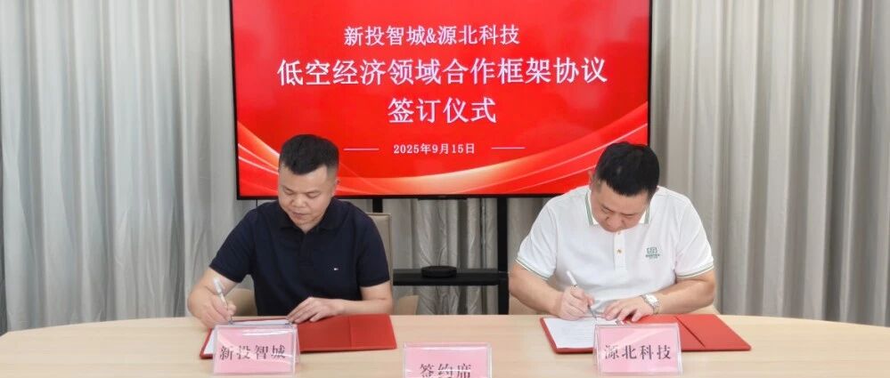 9月15日上午,四川新投智城科技有限公司(以下簡稱“新投智城”)與北安市源北農(nóng)業(yè)科技有限公司(以下簡稱“源北科技”)正式簽署低空經(jīng)濟領域合作框架協(xié)議。